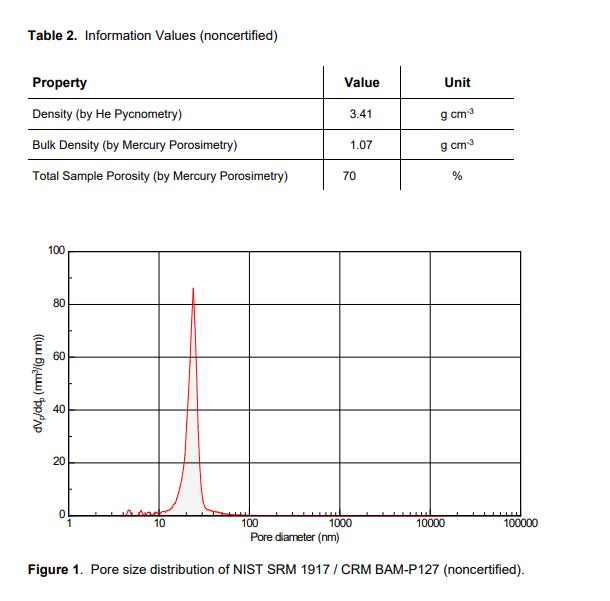 NIST SRM 1917汞滲透測量標(biāo)準(zhǔn)(標(biāo)準(zhǔn)品)由氧化鋁珠組成。材料的初級顆粒形成穩(wěn)定的附聚物。使用水銀孔隙率測定法,測量團(tuán)塊內(nèi)的孔隙。